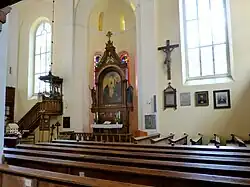 Der Altar ist aus Eichenholz. Das farbige Altarbild stammt von einem akademischen Maler. Die bereits 1810 von der katholischen Kirche Ebensee angekaufte Schleifladenorgel, die bereits im Bethaus ihren Dienst versah, wurde auch in der Kirche wieder aufgestellt. Die nunmehrige Orgel aus 1865 fertigte Franz Sales Ehrlich. Die vier Glocken wurden erst mit einem Jahr Verspätung geliefert (1864). Das alte Toleranzbethaus wurde 1864 verkauft und zu Gunsten einer neuen Schiffsanlegestelle der Hallstätter-See-Schifffahrt abgetragen.[3][1]