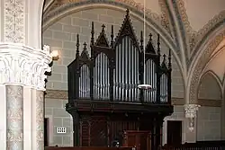 Die Kirche weist noch ihre originale ornamentale Ausmalung und ornamentale Verglasung der Erbauungszeit auf sowie die Ausstattung mit Emporen, Kanzel und fünfteiligem Orgelprospekt. Das neugotische Altarretabel enthält ein Altarbild mit der Darstellung „Christus am Ölberg“.