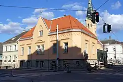 Das im Westen an die Kirche angestellte Pfarrhaus wurde im Jahre 1900 nach den Plänen des Architekten Josef Zeillinger erbaut. Die Hauptfassade im neugotischen Stil zum Schießstattring 19 zeigt eine abgesetzte Mittelachse mit hochgezogenem Spitzgiebel und eine Traufe mit Rundbogenfries.