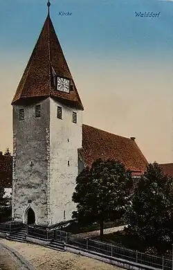 Die Walddorfer Pfarrkirche als Ansichtskartenmotiv um 1910