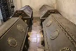 In der Gruftkapelle im Süden des Chors sind die Särge von vier Personen aufgestellt und zu besichtigen: