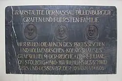 Als Grablege der nassauischen Grafen, Ahnen des niederländischen Königshauses, zieht sie bis heute viele niederländische Gäste an. Bestattet wurden unter dem Chorboden der Kirche zahlreiche Mitglieder des Hauses Nassau, unter anderem: