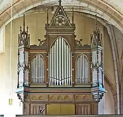 Die Gebrüder Peternell aus Seligenthal bei Schmalkalden bauten die Orgel und stellten sie 1888 auf.[13] Die Orgelwerkstatt Peternell war bekannt für ihre romantisch klingenden Orgeln. Passend zur reichen Ausmalung hob der Klang dieser Orgel die romantische Wirkung der Kirche noch hervor. Das Orgelgehäuse wurde in „neogotischer Manier“ gehalten. Das Instrument umfasst 1736 Pfeifen aus Zinn, Zink und Holz. Das Instrument hat 26 klingende Register auf zwei Manualen und Pedal.