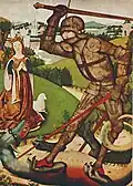Der bedeutende Flügelaltar aus der Zeit um 1470 ist im Umkreis des Meisters von Liesborn entstanden. Auf den beiden Mitteltafeln sind die Kreuzigung mit Kreuztragung sowie die Kreuzabnahme mit Christus in der Vorhölle und die Grablegung dargestellt. Der linke Flügel zeigt die Verkündigung, die Geburt Jesu, den Besuch der Heiligen Drei Könige und die Darstellung Jesu im Tempel. Der rechte Flügel zeigt die Auferstehung, Christi Himmelfahrt, das Pfingstereignis und das Weltgericht. Auf den Außenseiten/Rückseiten werden die Heiligen Georg im Kampf mit dem Drachen und Johannes der Täufer mit der Madonna gezeigt.