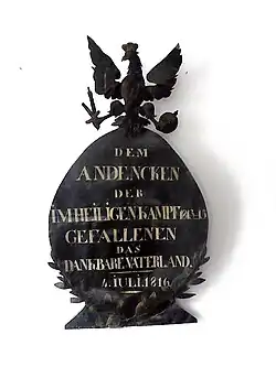 „Dem Andencken der im Heiligen Kampf 1813–1815 Gefallenen – Das dankbare Vaterland – 4. Iuli 1816“