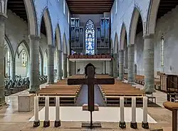 Blick zur Orgel und zu den drei Seitenschiffen