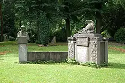 - Die Grabstätte Hulke ist ein privates Kriegerehrenmal für den 1915 gefallenen Willi Hulke. Das Ehrenmal besteht aus einem sarkophagähnlichen Mittelteil und Seitenflügeln, von denen nur der linke erhalten ist. Auf dem Podest am Ende dieses Seitenflügels steht eine Hermesfigur.