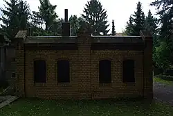 - Die Grabstätte Pohlmann wurde als neoklassizistisches Wandgrab um 1914 errichtet. Zu der Grabstätte gehört eine unterirdische Gruft.