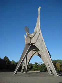 Das bauliche Wahrzeichen der Weltausstellung war die 21 Meter hohe und 65 Tonnen schwere Skulptur Man von Alexander Calder auf der Île Sainte-Hélène.