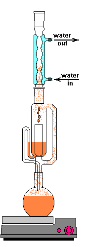 - bei der Dampfdestillation (Wasserdampfdestillation) wird einerseits die den Wertstoff oder die Verunreinigung enthaltende Lösung durch den (Wasser)Dampf aufgeheizt und leichtflüchtige Bestandteile zum Verdampfen gebracht, andererseits reißt der durchperlende (Wasser)Dampf diese anderen Dämpfe im Dampfstrom als Treibmittel mit und „extrahiert“ sie so aus der Lösung, wobei sich die mitgerissenen Substanzen (wie beispielsweise wasserunlösliche ätherische Öle) nicht unbedingt im (Wasser)Dampf oder Dampfkondensat lösen müssen.