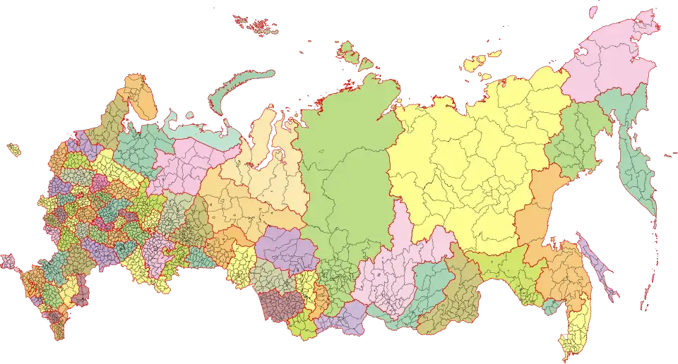Unterhalb der regionalen Ebene wird in Russland zwischen Rajons und Stadtkreisen differenziert. Die Rajons entsprechen in etwa den deutschen Landkreisen, österreichischen Politischen Bezirken oder Schweizer Bezirken. Die meisten Rajons gliedern sich wiederum in Stadt- und Landgemeinden (entsprechend городское поселение (gorodskoje posselenije) und сельское поселение (selskoje posselenije)). Rajons, Stadtkreise und Gemeinden bilden keine eigenständigen politische Ebenen, sondern stellen Gliederungen auf administrativ-territorialer Ebene beziehungsweise der munizipalen Selbstverwaltung dar. Letztere ist den Kommunen durch Artikel 12 der Verfassung garantiert, nach dem Entscheidungen bezüglich der Verwaltung kommunalen Eigentums, der Erstellung und Umsetzung des kommunalen Haushalts und der Festlegung lokaler Steuern und Abgaben selbständig treffen. Die Finanzmittel sind für Fragen lokaler Bedeutung vorgesehen, also z. B. der Instandhaltung kommunalen Wohnungseigentums.