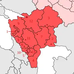 | 6 | Kabardino-Balkarische Republik | Naltschik | 12470 km² | 0.860 Mio. | |