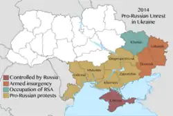 Nach der Absetzung des ukrainischen Präsidenten Wiktor Janukowytsch kam es im Osten der Ukraine und auf der Krim zu von Russland und dessen Präsidenten Putin verdeckt unterstützten Abspaltungsbewegungen. Hieraus entwickelte sich der Russisch-Ukrainische Krieg, in dem russlandfreundliche Verbände versuchten, die Loslösung der Gebiete um Donezk und Luhansk von der Ukraine zu erzwingen.
