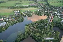 Die bauliche Besiedelung Fünfhausens verläuft hauptsächlich um die südlichen und östlichen Ränder des Weihers „Sandbrack“.[1]