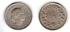 - ↑ Verordnung über die Auswechslung der Fünfrappenstücke. In: Sammlung der eidgenössischen Gesetze. AS 1980 895, 22. Juli 1980, S. 895–896 (amtsdruckschriften.ch [PDF]).