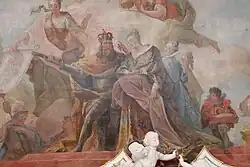 Die Architekturmalereien sind nach originalen Resten erneuert worden.