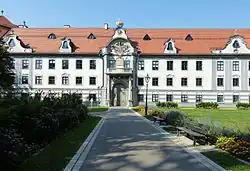 Unter Einbeziehung älterer Vorgängerbauten zwischen 1740 und 1752 unter Fürstbischof Joseph Landgraf von Hessen-Darmstadt errichtet, ist der Spätbarockbau seit 1817 Sitz der Regierung von Schwaben. Die Anlage ist unter der Aktennummer D-7-61-000-277 als denkmalgeschütztes Baudenkmal von Augsburg verzeichnet.