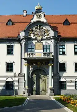 Der von Säulen getragene Balkon über dem prächtigen Ostportal wurde zwischen 1784 und 1789 als Erinnerung an einen Besuch Papst Pius’ VI. im Jahr 1782 angefügt. Ein südwestlicher Erweiterungsbau über der ehemaligen Pfalzkapelle sowie ein Gardistengebäude entstanden im Jahre 1902.
