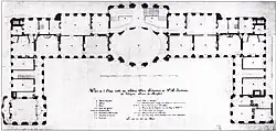 Für den Bau dieses Schlosses stellte Johann Conrad Schlaun einen Generalplan auf, an dem sich die Arbeiten orientieren sollten. Er sah vor, dass zu beiden Seiten vor dem Schloss Marställe errichtet werden sollten. Jeweils hinter diesen beiden sollten weitere Wirtschaftsgebäude entstehen. Der innere Ehrenhof, also der Bereich unmittelbar vor dem Schloss, sollte gemäß den Schlaun’schen Entwürfen durch ein schmuckvolles Gitter vom äußeren Ehrenhof, also dem Bereich zwischen Schloss und Promenade, abgegrenzt werden. An vorderster Front sollten zwei Wachhäuser, auch bekannt als Kavaliershäuser, den äußeren Ehrenhof begrenzen, während der heutige Schlossplatz als eine große Grünfläche zwischen Schloss und Stadt angelegt werden sollte. Auf der Rückseite des Schlosses plante Schlaun einen weitläufigen Garten nach französischem Vorbild. Um die gesamte Schlossanlage herum sollten Kanäle nach holländischer Art geführt werden. Bis zu Schlauns Tod 1773 waren der Außenausbau des Schlosses, der nördliche Marstall, das nördliche Wachhaus sowie der Innenausbau des Südflügels fertiggestellt. Nachfolger wurde Wilhelm Ferdinand Lipper, ein Anhänger des Klassizismus. Dieser konnte sich beim Auftraggeber nicht mit den Vorschlägen zur Änderung der Pläne der Fassaden durchsetzen, dafür durfte er die heute nicht mehr existierende Innenausstattung im klassizistischen Stil verwirklichen. Von Schlauns Generalplan errichtete Lipper noch das südliche Wachhaus, während der südliche Marstall sowie die Wirtschaftsgebäude nicht mehr erbaut wurden. Der Schlossgarten hinter dem Schloss, von Schlaun nach französischem Vorbild geplant, wurde von Lipper in Form eines englischen Landschaftsgartens umgesetzt.