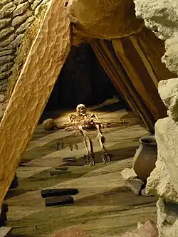 Damit wird eine herausgehobene Stellung des Toten im Vergleich zur Restbevölkerung herausgestellt. Wahrscheinlich wurde dies auch noch durch religiöse Rituale betont. Die Dolche und Beile lagen in strenger Ausrichtung der Himmelsachsen (ost-westlich nach Sonnenauf- und -untergang sowie nord-südlich nach dem Mittagshöchststand wie der Tote selbst).