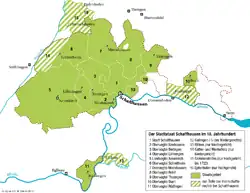 Das Marktrecht – insbesondere „die Genehmigung zum 'Aufstellen der Stände zu erteilen und das Standgeld' einzuziehen“ – hielt sich ungeschmälert bis 1806, vermutlich, weil St. Blasien und Schaffhausen an dem Umschlagplatz („auch Vieh in großen Mengen“) beide interessiert waren. Trotz vielfachen Streites um das „Standrecht“ (und dessen Einkünfte) „ließ sich das Gotteshaus St. Blasien dieses Recht niemals einschränken oder gar wegnehmen.“[12]