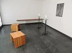 Das Fachzentrum Trauerseelsorge des Bistums Limburg ist eine sogenannte Profilkirche des Bistums Limburg. Das zentrale Ziel der Arbeit des Zentrums ist ein versöhnter Umgang mit Abschied, Sterben und Tod auf der Grundlage christlicher Hoffnung auf Auferstehung.[1] Darüber hinaus wurden in der Kirche des Zentrums bis zum Beginn des Umbaus in eine Begräbniskirche auch regelmäßige Gottesdienste gefeiert. Auch nach dem Umbau sollen noch Gottesdienste zusätzlich zu den Trauerfeiern in der Kirche stattfinden, regelmäßige Eucharistiefeiern kann es jedoch nicht geben, da das Zentrum keinen eigenen Priester mehr hat. Während des Umbaus findet Freitags ein Wortgottesdienst für Trauernde in der Kapelle des Zentrums statt. Das Zentrum befindet sich in Frankfurt-Nordend in einem Wohngebiet.