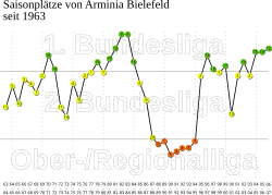 | 2 | Arminia Bielefeld | 8 | 1972, 1979, 1985, 1998, 2000, 2003, 2009, 2022 |