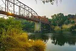 Über den American River führt eine schöne rote Brücke[6], die als Verbindung zwischen dem Radweg auf der anderen Seite des Flusses und dem alten Stadtzentrum von Fair Oaks dient[7]. Da es sich um eine Fußgängerbrücke handelt, können nur Fußgänger oder Radfahrer sie überqueren. Viele Menschen genießen es, abends über die Brücke zu gehen und den Sonnenuntergang zu beobachten.[8]