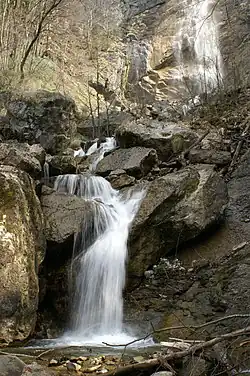 Einer der Wasserfälle des Fallbachs unterhalb des Kühbergs. | ||