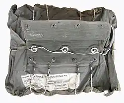 - POD (Parachute Opening Device): Eine kleine halboffene Tasche, in der der gepackte Fallschirm liegt und die durch die Fangleinen, die in S-Schlägen mit Hilfe von Packgummis in Schlaufen befestigt sind, verschlossen wird.