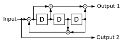 Rekursive Faltungscodierer besitzen interne Rückkopplungsstellen, die zu unendlich langen Ausgabefolgen führen können. Rekursive Faltungsstrukturen lassen sich systematisch aus den nicht-rekursiven Faltungsstrukturen gewinnen. Diese Kodierer werden in der Literatur als RSC-Encoder (Recursive Systematic Convolutional-Encoder) bezeichnet.