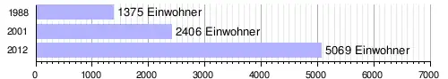 Im Hauptort lebten bei der Volkszählung 2012 5069 Einwohner in 589 Haushalten,[1] bei der Volkszählung 2001 2406 in 249 Haushalten[6] und bei der Volkszählung 1988 1375 in 168 Haushalten.[7]