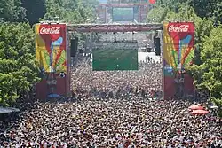 Die Vorrundenspiele der deutschen Nationalmannschaft wurden von mehr als einer Million Zuschauer besucht. Insgesamt waren auf der Straße des 17. Juni sieben Großleinwände für die Besucher aufgestellt. Die Hauptbühne mit ihrer 60 Quadratmeter großen Leinwand befand sich direkt vor dem Brandenburger Tor. Dort fand vor dem Anpfiff ein Vorprogramm mit Auftritten verschiedener Künstler statt.[10]