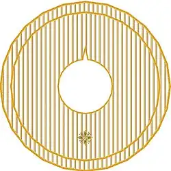 In seiner Ausführung als Schultergewand des Papstes ist der Fanon ein kreisförmiges, weißseidenes Schultergewand mit weißen und goldenen Streifen von ca. 92 cm Durchmesser. Der Rand ist mit einer dünnen Goldborte verziert. Der Fanon besteht aus zwei Seidenstofflagen, die nur an der Kopföffnung aneinander genäht sind. Am Brustteil befindet sich ein goldgesticktes Kreuz. Die innere (im Durchmesser etwas größere) Lage verbleibt beim Ankleiden zwischen Albe und Messgewand, während die äußere kragenartig über dem Messgewand ausgestaltet wird.