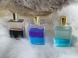 Der Inhalt der Aura-Soma-Fläschchen besteht aus zwei Flüssigkeiten die in eine obere und eine untere Schicht zu je 50 % aufgeteilt sind. Sie lassen sich durch schütteln zwar für kurze Zeit mischen, separieren sich aber bald wieder in zwei Schichten. Die obere Schicht besteht aus gefärbten Ölen wie Oliven- oder Lotusblütenöl, die untere Schicht besteht aus gefärbtem Wasser, angeblich aus einer heiligen Quelle von Claisten Burry in England. Anwender sollen durch „energetische Kopplung“ die richtige Flasche auswählen, schütteln, und den Inhalt wie ein kosmetisches Öl auf die Haut streichen. Aura-Soma ist eine eingetragene Marke der Firma Aura-Soma Products Limited aus Glastonbury.[8]