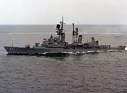 Die Sonaranlage war vom Modell SQQ-23. Diese hatte zwei Sonodome im Boden des Schiffes und konnte sowohl aktiv als auch passiv getauchte U-Boote aufspüren. Für elektronische Kampfführung war zu Beginn das WLR-1 an Bord, dies wurde später durch SLQ-32 ersetzt. Ebenfalls zum SLQ-32-Paket gehört das Mark 36 SRBOC, das Düppel und Flares in die Luft schießt, die anfliegende Raketen sowohl mit Radar- wie auch mit Infrarotsuchkopf vom Schiff ablenken sollen.