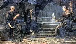- ↑ Franziska Rehlinghaus: Die Semantik des Schicksals, Göttingen 2015, S. 128–130, 142–153; Marco Frenschkowski: Schicksal. In: Enzyklopädie des Märchens, Band 11, Berlin 2004, Sp. 1380–1385, hier: 1382 f.; Marco Brusotti: Die Leidenschaft der Erkenntnis, Berlin 1997, S. 157 f. und Anm. 282.