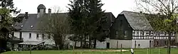 Das Fachwerkhaus neben dem Gutshof fällt durch seinen hohen Sockel mit freiliegenden Bruchsteinen und sein sehr spitzes, dominierendes Dach auf, das durch die Verschieferung zur Dachseite unterstrichen wird. Das Gefachbild ist sehr schlicht, fast quadratisch. Fenster und Türen haben sich im weitgehend unmodernisierten Zustand erhalten.