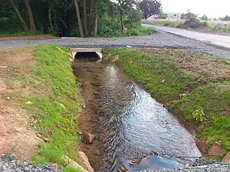 Nach dieser Mündung wendet sich der Faulbach langsam nach Südwesten. - Forstgraben, von links nahe an einem Feldkreuz an einer Straßengraben auf etwa 150 m ü. NHN.