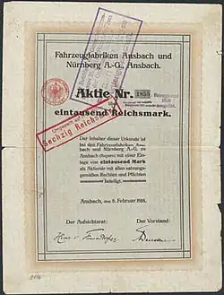 | Gründung | 1917 (als Fahrzeugfabriken Ansbach und Nürnberg AG) |