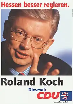 - Wiesbaden/Deutschland: Bei der 15. Landtagswahl erreicht die CDU, angeführt von Roland Koch, mit 43,7 % das beste Ergebnis in Hessen seit 1982. Die SPD muss nach acht Jahren in die Opposition, da Koch keine Große Koalition wünscht.[9]
