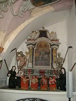 Das Fegefeuer erfährt, wer in der Gnade Gottes stirbt, aber noch nicht vollkommen geläutert ist, um die Heiligkeit zu erlangen, die notwendig ist, in die Freude des Himmels eingehen zu können. Das Purgatorium ist somit völlig verschieden von der Bestrafung der Verdammten in der Hölle.[11] Die sogenannten Armen Seelen sind im Fegefeuer also nicht endgültig festgehalten, sondern sie haben immer die Gewissheit, daraus entlassen zu werden, und zwar stets in Richtung Himmel. Gebete der Lebenden, besonders im Rahmen des Memorialwesens, sollen helfen, diese Zeit zu verkürzen.