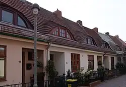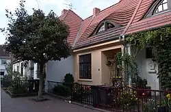 - ↑ Tatsächlich besteht die Siedlung aus 22 Häusern, wie auch in der Denkmaldatenbank aufgeführt. Schwartz (siehe Literatur) nennt dagegen nur 21 Häuser.