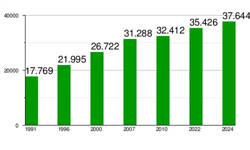| Schätzung | 37.644 Ew. (2024[1]) | ||
