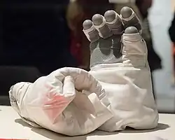 - ↑ Zum Vergleich: die elektrischen Systeme des Orlan-M-Raumanzugs, der ohne Servomotoren auskommt, haben eine Leistungsaufnahme von 54 W, der Kosmonaut kann damit 7 Stunden lang autonom arbeiten.
