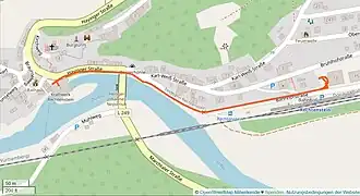 Die Strecke beginnt auf dem Bahnhofsvorplatz von Rechtenstein, der frühere Umladeplatz befand sich auf der östlichen Seite des Stationsgebäudes. Von dort aus folgt sie – zunächst parallel zur Hauptbahn – der Bahnhofstraße auf der rechten Straßenseite. Etwa 200 Meter nach dem Bahnhof überquert die Strecke der Feldbahn deren Fahrbahn und folgt ab hier dem Ufer der Donau flussaufwärts. Beim Kilometer 0,4 überquert sie die aus Richtung Obermarchtal kommende Landesstraße 249, folgt dann der Hayinger Straße und mündet schließlich auf dem Gelände des Wasserkraftwerks, heute: Dipl.-Ing. Elmar Reitter – Wasserkraftanlagen.