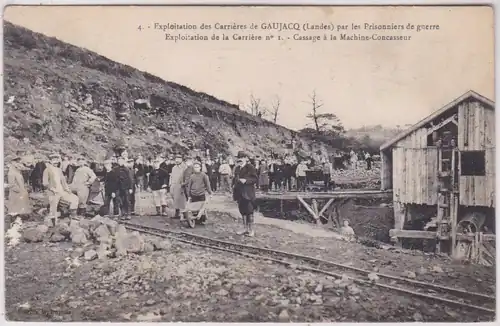 Ende 1914 wurde beschlossen, in Gaujacq ein Lager für deutsche Gefangene einzurichten. Die ersten Soldaten, die zukünftigen Wärter, kamen im April 1915 in Gaujacq an. Die ersten Gefangenen trafen im darauffolgenden Monat ein. Bis zum Ende des Ersten Weltkriegs beherbergte das Lager etwa 600 Gefangene. Diese mussten drei Jahre lang den Steinbruch ausbeuten. Das Lager wurde Mitte 1918 geschlossen und der Steinbruchbetrieb zur gleichen Zeit eingestellt.[1][5][6]
