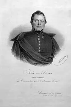 - ↑ neben der oben gezeigten, gibt es in der Österreichischen Nationalbibliothek noch eine weitere Darstellung als Generalmajor, search.onb.ac.at
