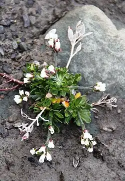 - Alpen-Felsenblümchen (Draba alpina L.):[2] Es ist zirkumpolar in Grönland sowie Kanada verbreitet und kommt in Europa auf Spitzbergen, in Skandinavien und im nördlichen Russland vor, aber nicht in den Alpen.[14][3][12][5]