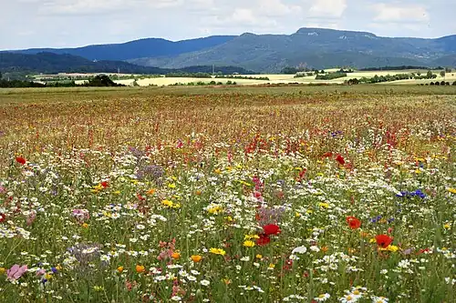 ![]() Von der Hochfläche des Meißnervorlands bietet sich ein Blick auf die Schutzgebiete der Gobert. | ||